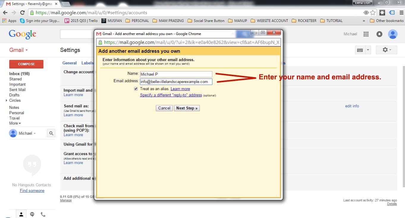 - On the Accounts and Import section of Settings, look at the "Send Mail As" section and click "Add another email address that you own".