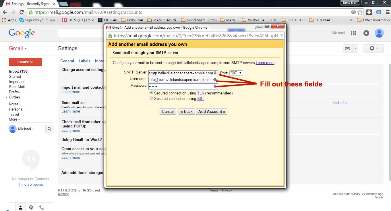 - Fill out the SMTP Server, Username and Password fields.You can find the required information from Godaddy (or your domain registrar, where you purchased your business domain). Then click 'Add Account'.