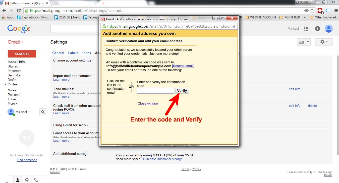 - You should receive an email confirmation to ensure that you actually do own the email address you're adding. Enter the code and Verify.